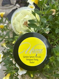 Indulge in the soft, sweet scent of Golden Lemon Drizzle — a whipped body butter that smells like warm pound cake straight from the oven, topped with creamy vanilla frosting.